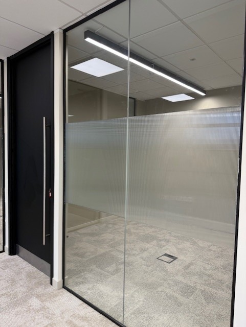 In many commercial buildings, glass partitions must include manifestation markings to meet health and safety regulations and reduce the risk of accidental impact.